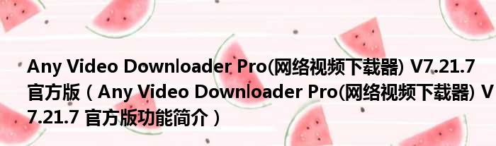 导读 大家好,关于Any Video Downloader Pro(网络视频下载器) V7 21 7 官方版,Any Video Downloader Pro(网络视频下载器) V7 21 7 官