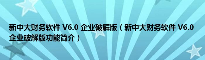 新中大财务软件 V6.0 企业破解版(新中大财务软件 V6.0 企业破解版功能简介)