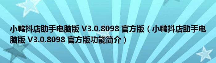 小鸭抖店助手电脑版 V3.0.8098 官方版(小鸭抖店助手电脑版 V3.0.8098 官方版功能简介)