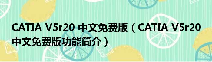 CATIA V5r20 中文免费版(CATIA V5r20 中文免费版功能简介)