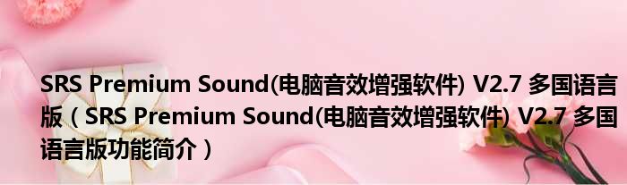 SRS Premium Sound(电脑音效增强软件) V2.7 多国语言版(SRS Premium Sound(电脑音效增强软件) V2.7 多国语言版功能简介)