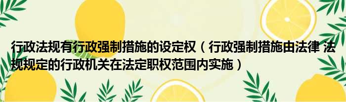 导读 大家好,今天小六子来为大家解答以下的问题,关于行政法规有行政强制措施的设定权,行政强制措施由法律 法规规定的行政机关在法定职权范围