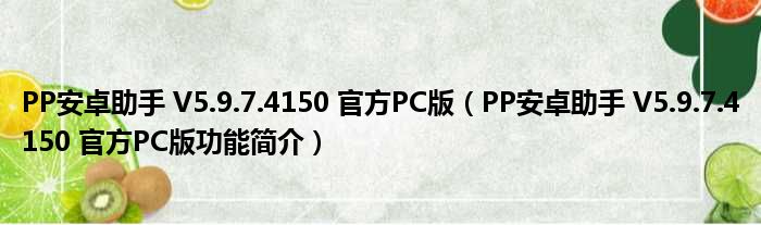 PP安卓助手 V5.9.7.4150 官方PC版(PP安卓助手 V5.9.7.4150 官方PC版功能简介)