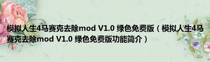 导读 大家好,关于模拟人生4马赛克去除mod V1 0 绿色免费版,模拟人生4马赛克去除mod V1 0 绿色免费版功能简介这个很多人还不知道,小勒来为大