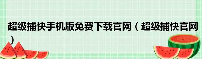 超级捕快手机版免费下载官网(超级捕快官网)