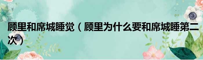 顾里和席城睡觉(顾里为什么要和席城睡第二次)