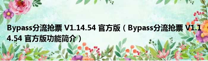 Bypass分流抢票 V1.14.54 官方版(Bypass分流抢票 V1.14.54 官方版功能简介)