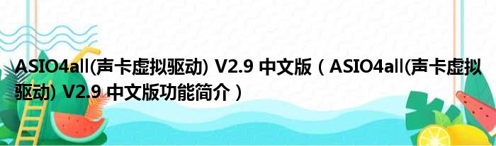ASIO4all(声卡虚拟驱动) V2.9 中文版(ASIO4all(声卡虚拟驱动) V2.9 中文版功能简介)