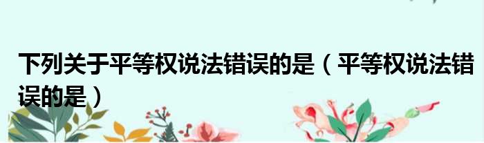 下列关于平等权说法错误的是(平等权说法错误的是)