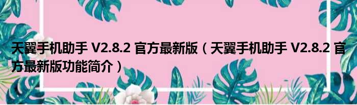 导读 大家好,关于天翼手机助手 V2 8 2 官方最新版,天翼手机助手 V2 8 2 官方最新版功能简介这个很多人还不知道,小勒来为大家解答以上的问题