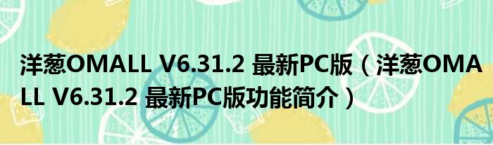 洋葱OMALL V6.31.2 最新PC版(洋葱OMALL V6.31.2 最新PC版功能简介)