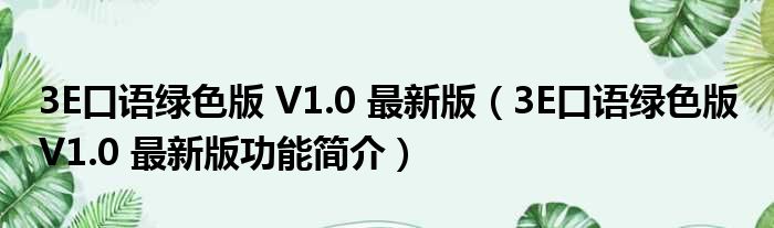 3E口语绿色版 V1.0 最新版(3E口语绿色版 V1.0 最新版功能简介)