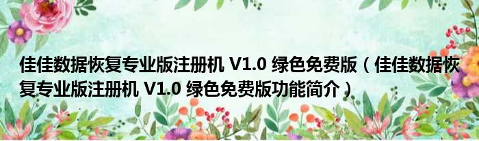 导读 大家好,关于佳佳数据恢复专业版注册机 V1 0 绿色免费版,佳佳数据恢复专业版注册机 V1 0 绿色免费版功能简介这个很多人还不知道,小勒来