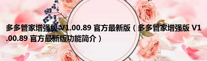 多多管家增强版 V1.00.89 官方最新版(多多管家增强版 V1.00.89 官方最新版功能简介)