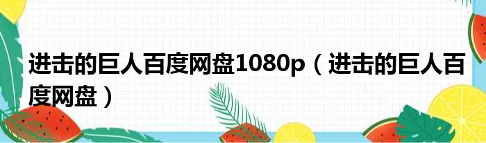 大家好,今天小六子来为大家解答以下的问题,关于进击的巨人百度网盘1080p,进击的巨人百度网盘这个很多人还不知道,现在让我们一起来看看吧!