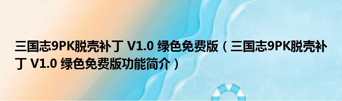 三国志9PK脱壳补丁 V1.0 绿色免费版(三国志9PK脱壳补丁 V1.0 绿色免费版功能简介)