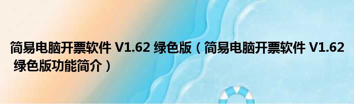 简易电脑开票软件 V1.62 绿色版(简易电脑开票软件 V1.62 绿色版功能简介)