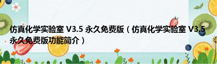 仿真化学实验室 V3.5 永久免费版(仿真化学实验室 V3.5 永久免费版功能简介)