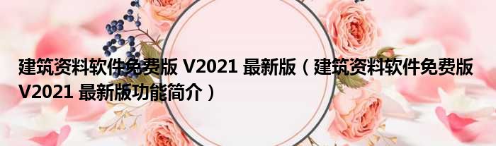 导读 大家好,关于建筑资料软件免费版 V2021 最新版,建筑资料软件免费版 V2021 最新版功能简介这个很多人还不知道,小勒来为大家解答以上的问