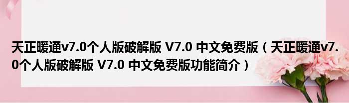 天正暖通v7.0个人版破解版 V7.0 中文免费版(天正暖通v7.0个人版破解版 V7.0 中文免费版功能简介)