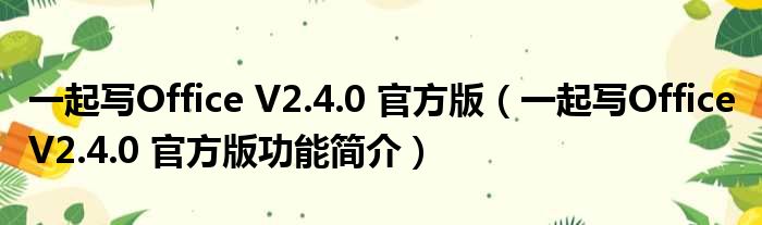 一起写Office V2.4.0 官方版(一起写Office V2.4.0 官方版功能简介)