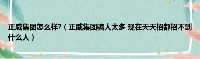 正威集团怎么样?(正威集团骗人太多 现在天天招都招不到什么人)
