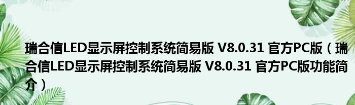 瑞合信LED显示屏控制系统简易版 V8.0.31 官方PC版(瑞合信LED显示屏控制系统简易版 V8.0.31 官方PC版功能简介)