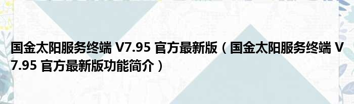 导读 大家好,关于国金太阳服务终端 V7 95 官方最新版,国金太阳服务终端 V7 95 官方最新版功能简介这个很多人还不知道,小勒来为大家解答以上