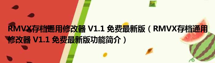 RMVX存档通用修改器 V1.1 免费最新版(RMVX存档通用修改器 V1.1 免费最新版功能简介)