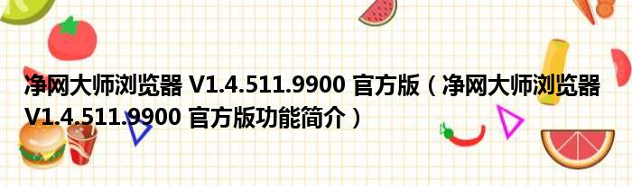 净网大师浏览器 V1.4.511.9900 官方版(净网大师浏览器 V1.4.511.9900 官方版功能简介)