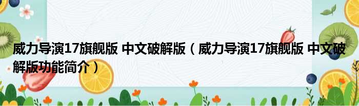 威力导演17旗舰版 中文破解版(威力导演17旗舰版 中文破解版功能简介)