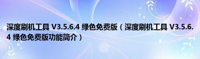 深度刷机工具 V3.5.6.4 绿色免费版(深度刷机工具 V3.5.6.4 绿色免费版功能简介)