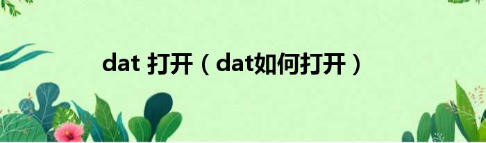 导读 大家好,今天小六子来为大家解答以下的问题,关于dat 打开,dat如何打开这个很多人还不知道,现在让我们一起来看看吧!1、DAT是数据流格式