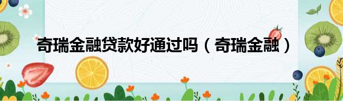 奇瑞金融贷款好通过吗(奇瑞金融)