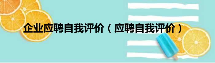 大家好,今天小六子来为大家解答以下的问题,关于企业应聘自我评价,应聘自我评价这个很多人还不知道,现在让我们一起来看看吧!