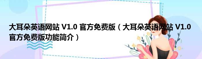 大耳朵英语网站 V1.0 官方免费版(大耳朵英语网站 V1.0 官方免费版功能简介)