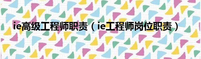 ie高级工程师职责(ie工程师岗位职责)