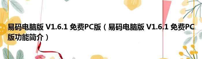 易码电脑版 V1.6.1 免费PC版(易码电脑版 V1.6.1 免费PC版功能简介)
