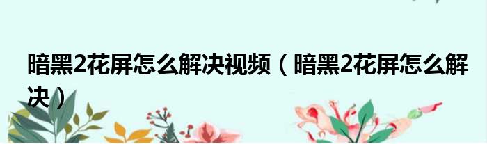 导读 大家好,今天小六子来为大家解答以下的问题,关于暗黑2花屏怎么解决视频,暗黑2花屏怎么解决这个很多人还不知道,现在让我们一起来看看吧!1