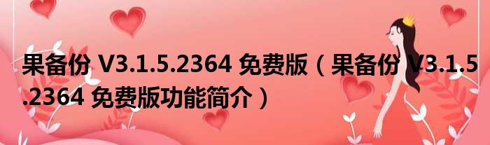 果备份 V3.1.5.2364 免费版(果备份 V3.1.5.2364 免费版功能简介)