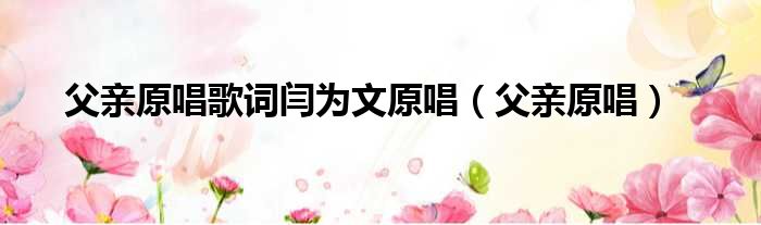 大家好,今天小六子来为大家解答以下的问题,关于父亲原唱歌词闫为文原唱,父亲原唱这个很多人还不知道,现在让我们一起来看看吧!