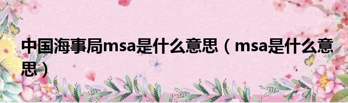 导读 大家好,今天小六子来为大家解答以下的问题,关于中国海事局msa是什么意思,msa是什么意思这个很多人还不知道,现在让我们一起来看看吧!1、