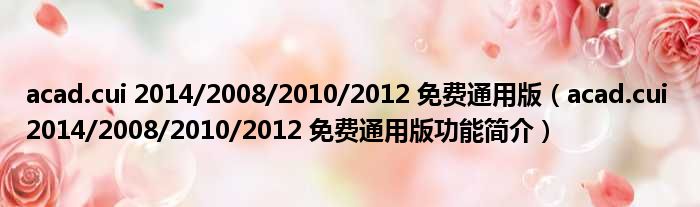 acad.cui 2014/2008/2010/2012 免费通用版(acad.cui 2014/2008/2010/2012 免费通用版功能简介)