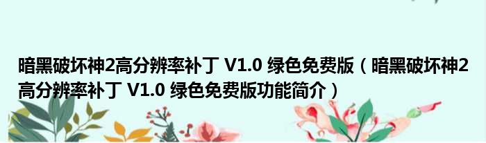 暗黑破坏神2高分辨率补丁 V1.0 绿色免费版(暗黑破坏神2高分辨率补丁 V1.0 绿色免费版功能简介)
