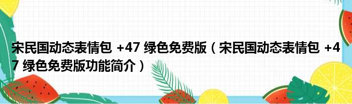 宋民国动态表情包 +47 绿色免费版(宋民国动态表情包 +47 绿色免费版功能简介)