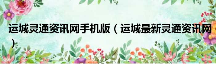 导读 大家好,今天小六子来为大家解答以下的问题,关于运城灵通资讯网手机版,运城最新灵通资讯网这个很多人还不知道,现在让我们一起来看看吧!1