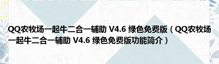 QQ农牧场一起牛二合一辅助 V4.6 绿色免费版(QQ农牧场一起牛二合一辅助 V4.6 绿色免费版功能简介)