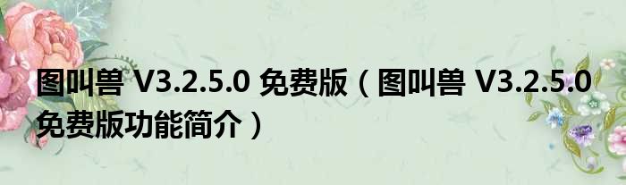 导读 大家好,关于图叫兽 V3 2 5 0 免费版,图叫兽 V3 2 5 0 免费版功能简介这个很多人还不知道,小勒来为大家解答以上的问题,现在让我们一起