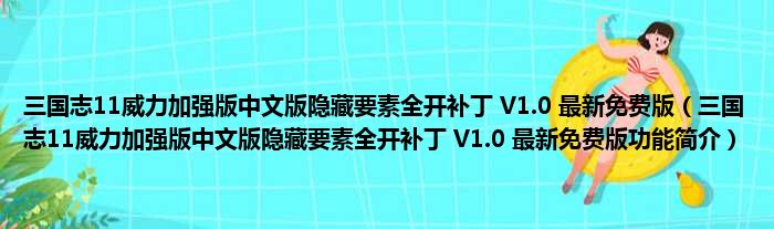 三国志11威力加强版中文版隐藏要素全开补丁 V1.0 最新免费版(三国志11威力加强版中文版隐藏要素全开补丁 V1.0 最新免费版功能简介)