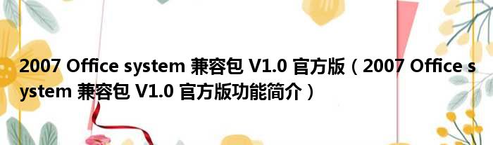 2007 Office system 兼容包 V1.0 官方版(2007 Office system 兼容包 V1.0 官方版功能简介)